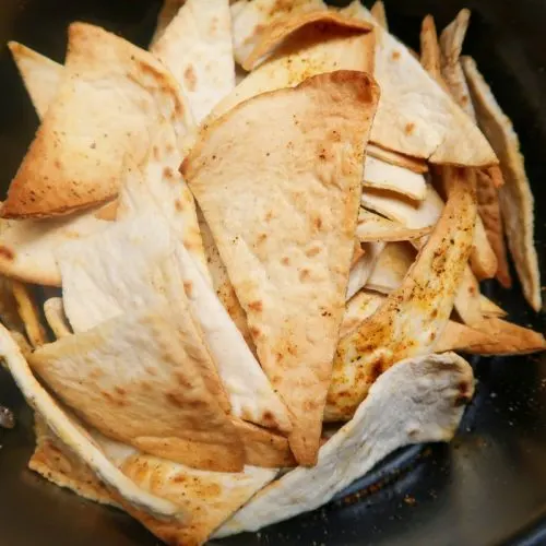 - I personally slice each tortilla in to halves, then quarters, then eighths. This allows me to make lots of tortilla chips! It is quickest to slice the tortillas once you have ‘dressed’ them, and then just give them a quick mix in a bowl to coat the edges again.
