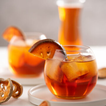 - Put 4 slices of dried bael fruit in a bowl and microwave at the highest heat for 1 minute or use a kitchen torch to slightly burn each slice of the fruit on both sides.