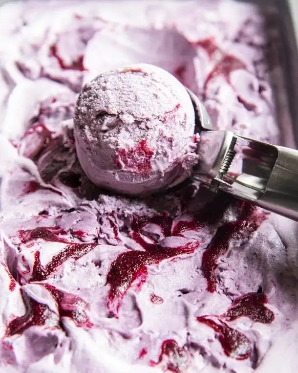 Add spoonfuls of the blackberry ice cream into a 2 quart container, drizzle blackberry sauce over the top. Repeat with more ice cream and more sauce until the container is filled and all the ice cream is in it.