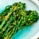 - Rinse ½ lb broccolini in running water. Cut and discard the ends.