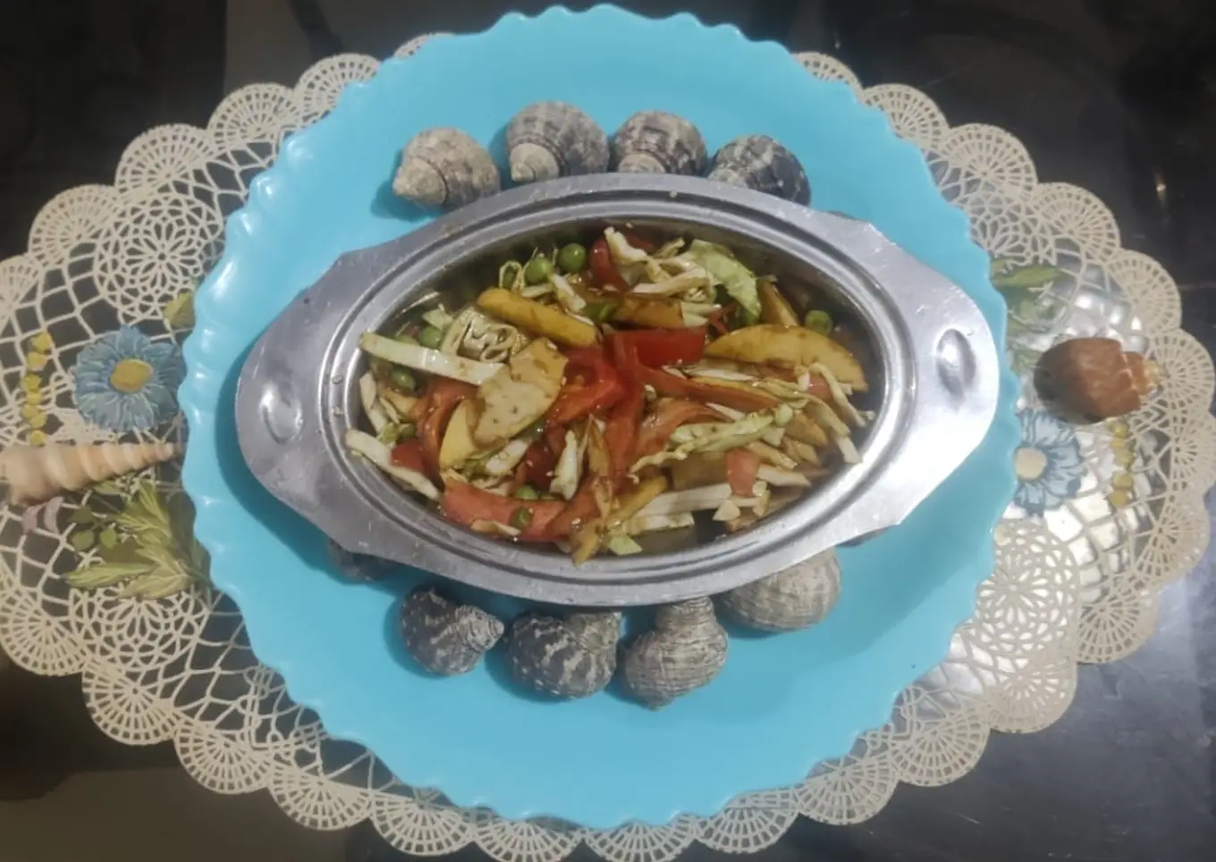 1. Start by chopping all the veggies. Cut apple and tomatoes into slices, chop cabbage thinly, peel carrot with a peeler and green chilli into small pieces