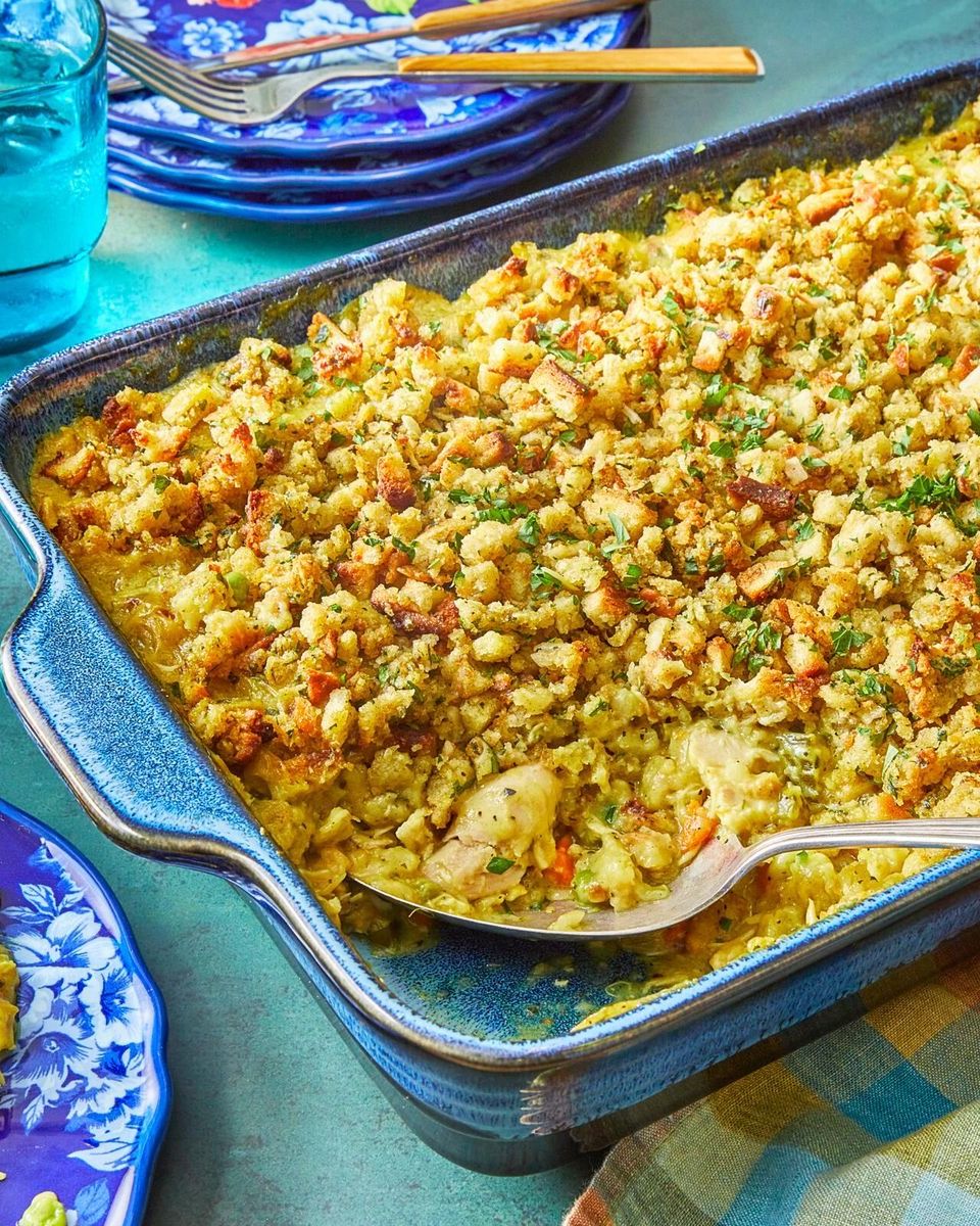 5. 5Top the chicken mixture evenly with the stuffing mixture. Bake until golden brown on top and bubbly around the edges, 30 to 35 minutes. Let stand 15 minutes. Sprinkle with additional chopped parsley before serving.