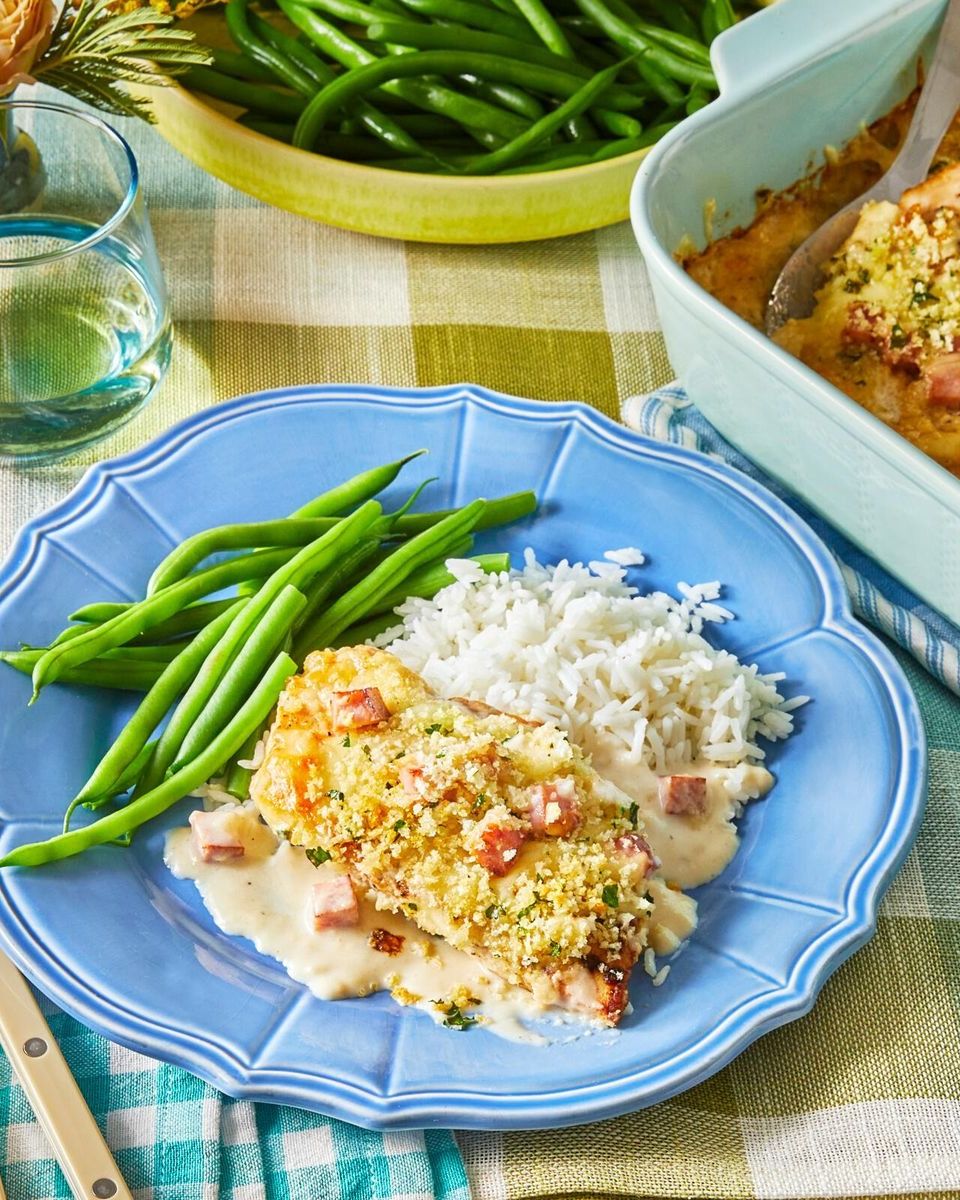 9Bake until golden brown and bubbly, and chicken is cooked through, 25 to 30 minutes. Sprinkle with additional parsley and serve alongside steamed rice and green beans, if you like.