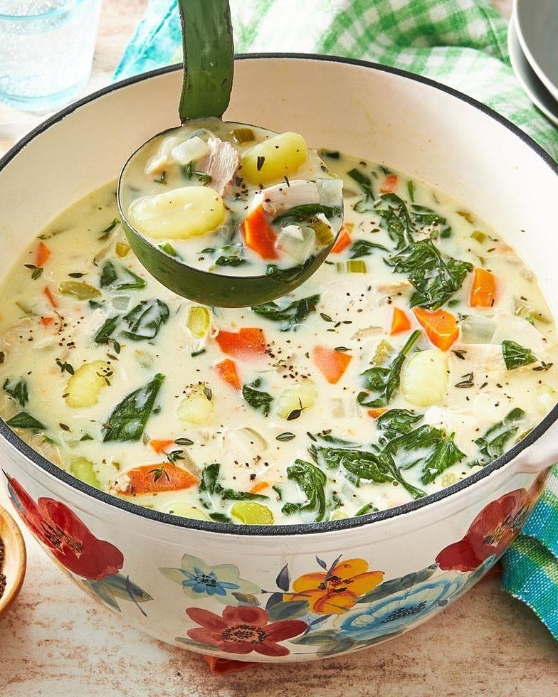 - 3Stir in the gnocchi and cook, covered, stirring occasionally, under tender and fluffy, 4 to 5 minutes. Stir in the spinach and half-and-half. Cook, stirring occasionally, until well combined and spinach is tender, 1 to 2 minutes. Remove from heat. Season to taste with salt and pepper.