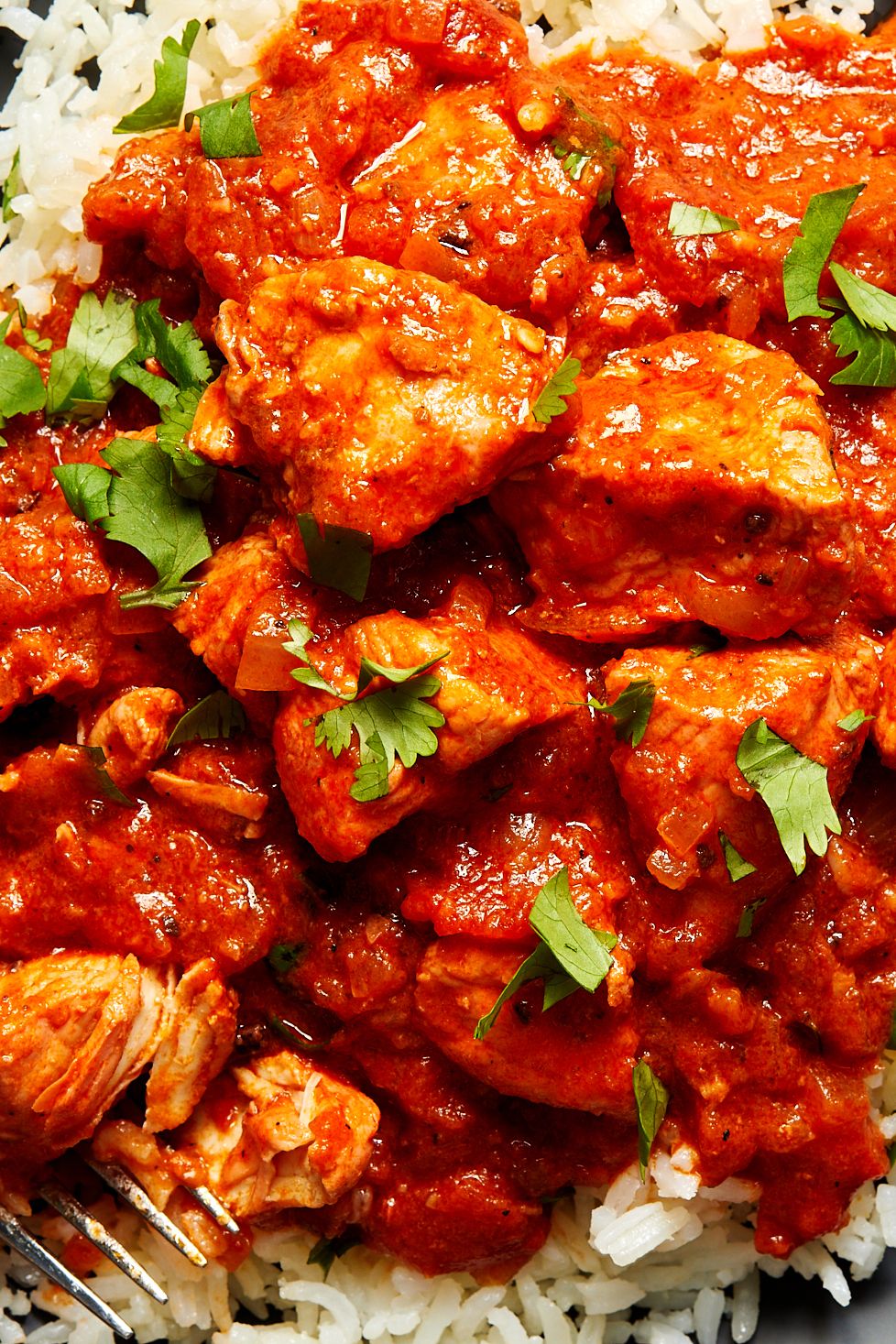 - Divide rice among plates. Spoon chicken and sauce over. Top with cilantro.