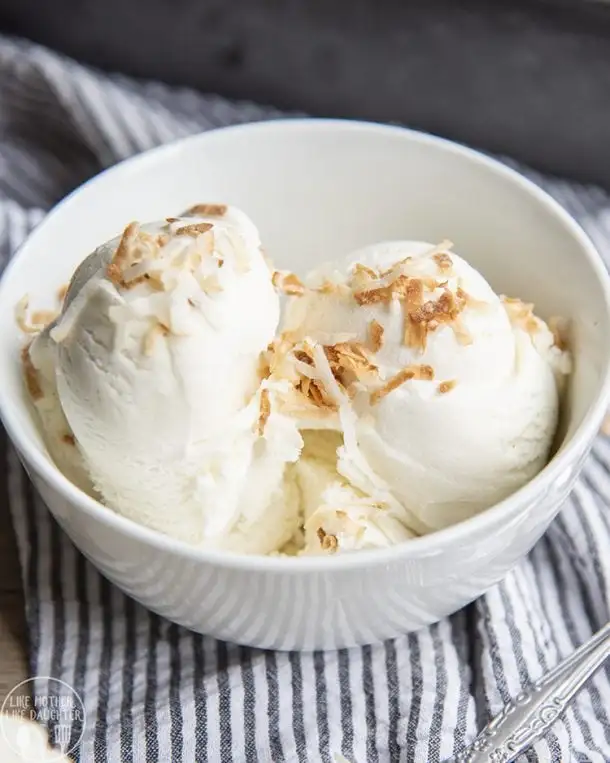 - Combine coconut milk, cream, sugar, and vanilla in a large bowl.