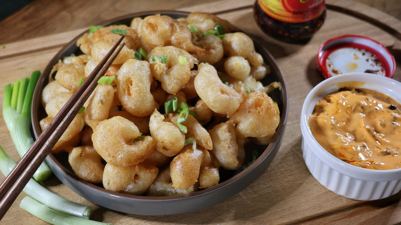 Serve the shrimp hot, with plenty of chili crisp dipping sauce on the side.