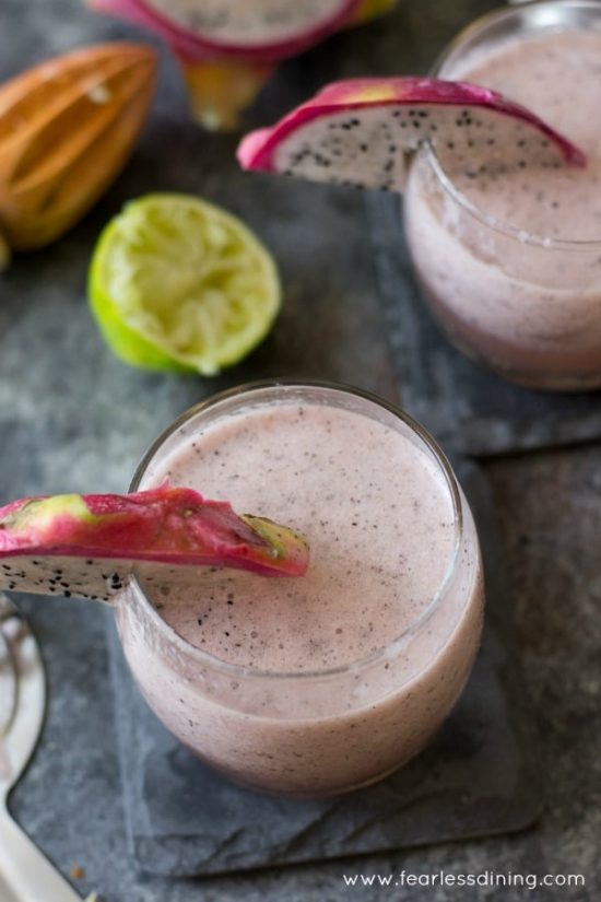 - Add dragon fruit, blood orange pulp, and lime juice to the Vitamix. Blend until smooth.