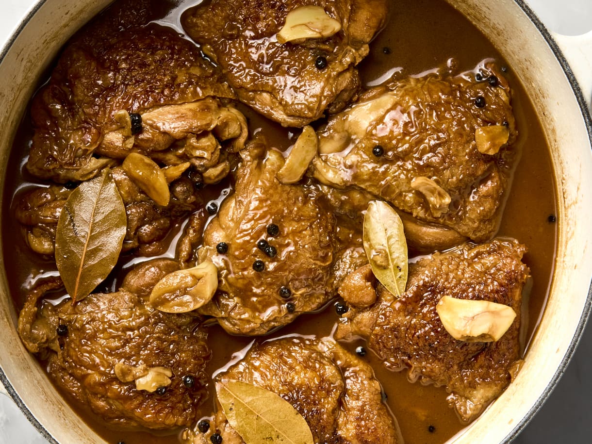 Make ahead: Adobo actually tastes better made up to 1 day ahead; let cool and refrigerate the sauce and chicken together in an airtight container. Reheat covered on the stovetop over low heat until warmed through.