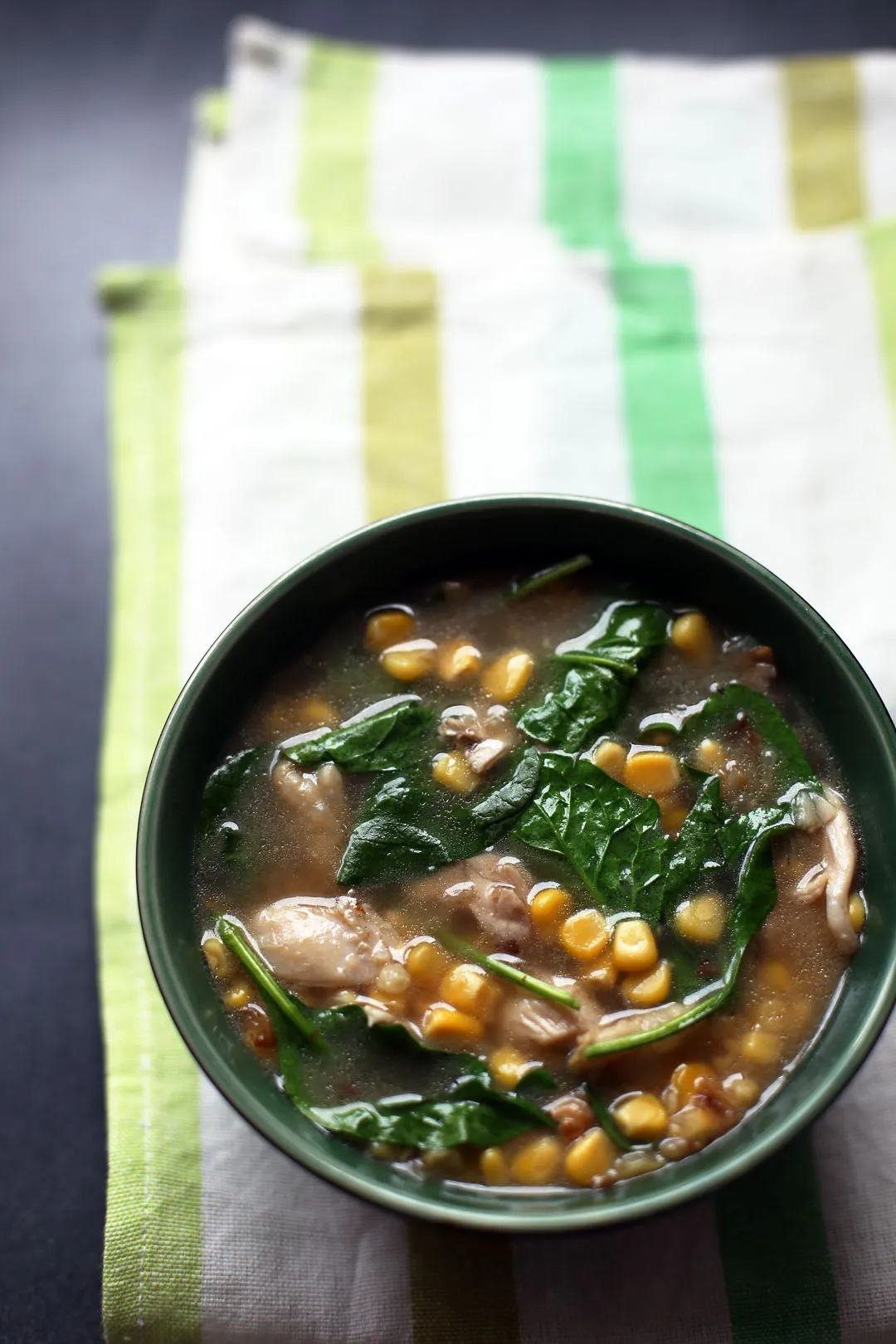 - Pour the chicken stock and water, add the cob then bring it to a boil, remove any scum that rises from the top. Simmer for 25 minutes. Then set aside.