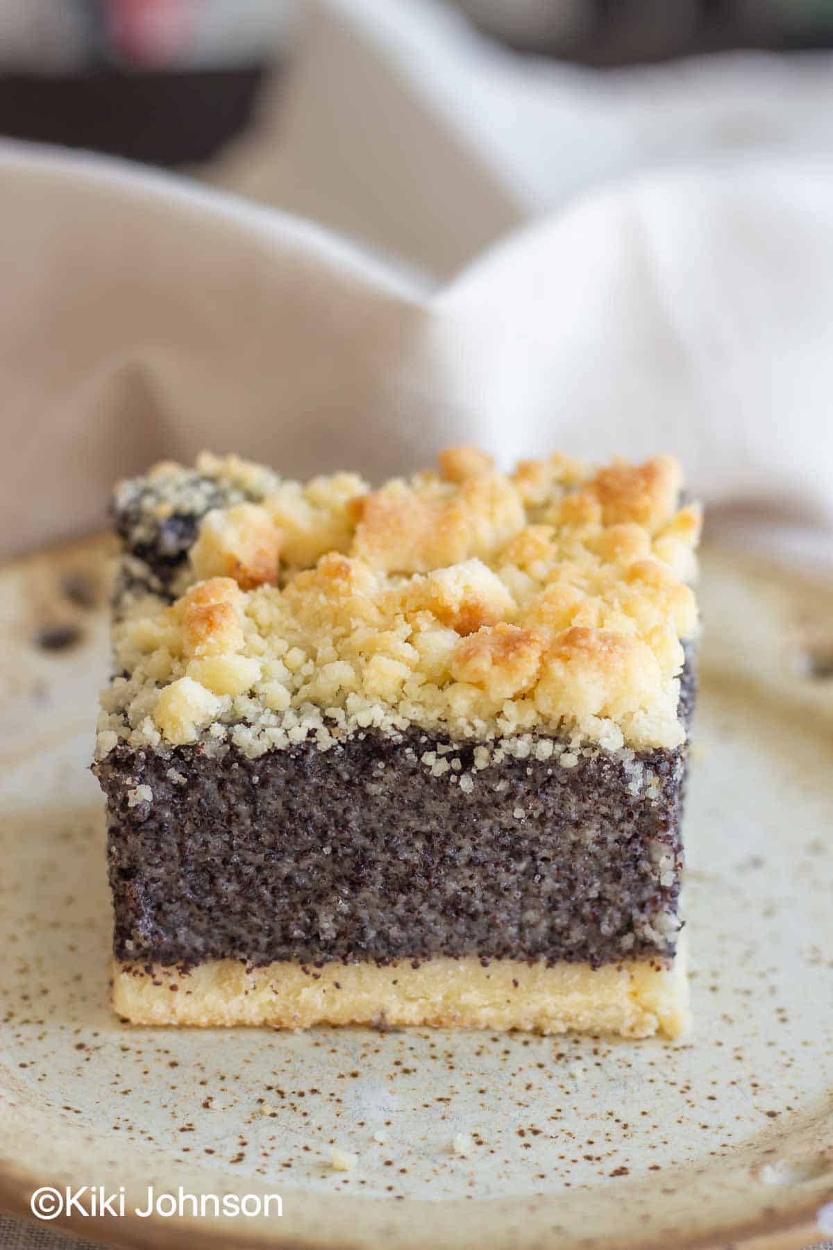 7. Once the filling has cooled, spread it evenly upon the dough on the baking sheet. Now take the second half of your dough, and use your hands to roughly break it up into little streusel-y bits as you spread it all across the top of your filling. Bake for about 40 minutes. Allow to cool before serving.