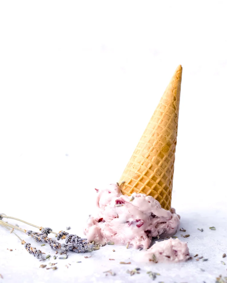 - Freeze mixture in ice cream maker according to machine directions, transfer to container and chill in the freezer to harden, preferably overnight. Garnish with dried lavender flowers and enjoy!