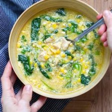 Press Sauté key again. Add the spinach to the soup and mix through.
