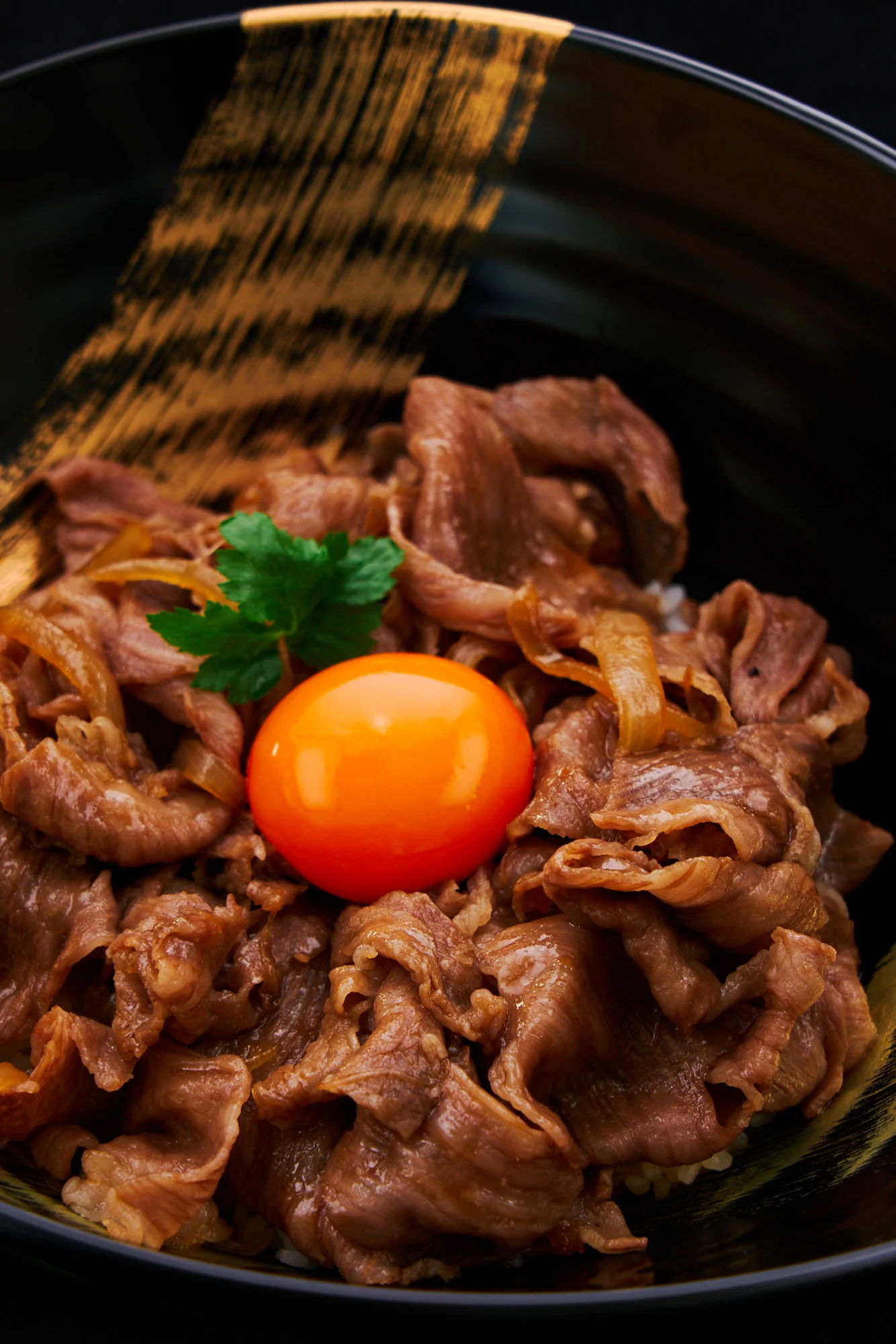 - Optionally, top your premium gyudon with 2 egg yolks or onsen tamago.