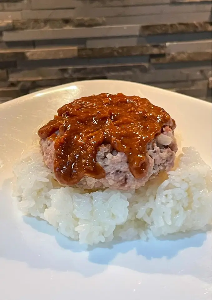 13. Japanese hamburger steaks are typically served with rice and topped with sauce.