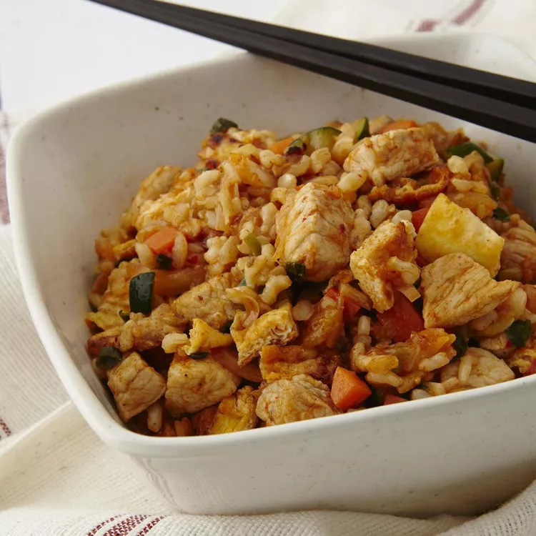 - Add remaining 1 tablespoon oil to the wok; add rice and stir until hot, 1 to 2 minutes. As you stir, pull the rice from the bottom to the top so it all gets coated with oil and evenly cooked.