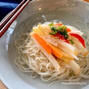 1. Bring water to boil. Add somyeon noodles and boil for 3 1/2 ~ 4minutes.