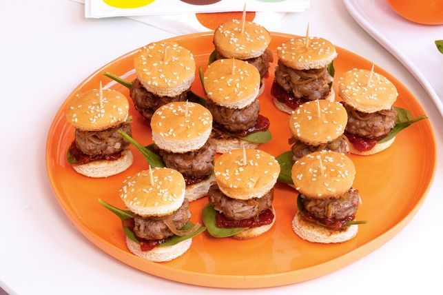 1. Finely chop half of 1 onion. Thinly slice remaining onions. Place chopped onion, mince, breadcrumbs, egg and 1 tablespoon chutney in a bowl. Season with salt and pepper. Mix to combine. Roll tablespoons of mixture to make 24 balls. Flatten slightly. Place on a plate. Cover and refrigerate for 10 minutes.
