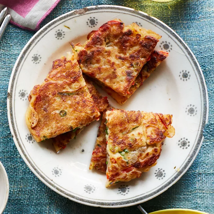 3. Cut the pancakes into wedges. Serve warm with the dipping sauce (see headnote), if desired.