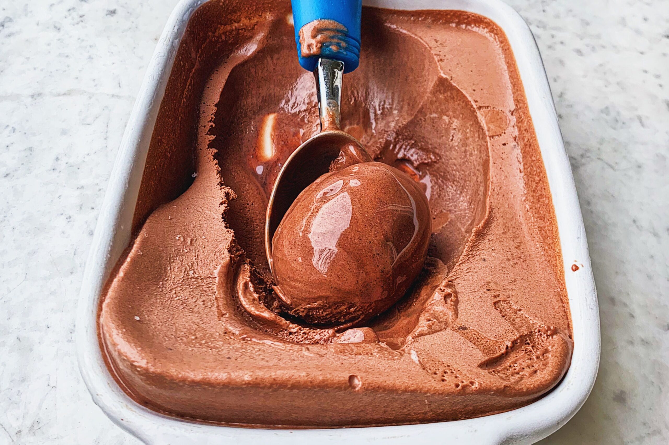 • Gently fold all the whipped cream in the cocoa mixture. Pour the mixture in a container and let it freeze overnight. Serve it as soon as you pull it out of the freezer—it will be nice and scoopable. Bonus points if you serve it in a frozen bowl. Don’t let it sit at room temperature for too long, it will start melting fast.