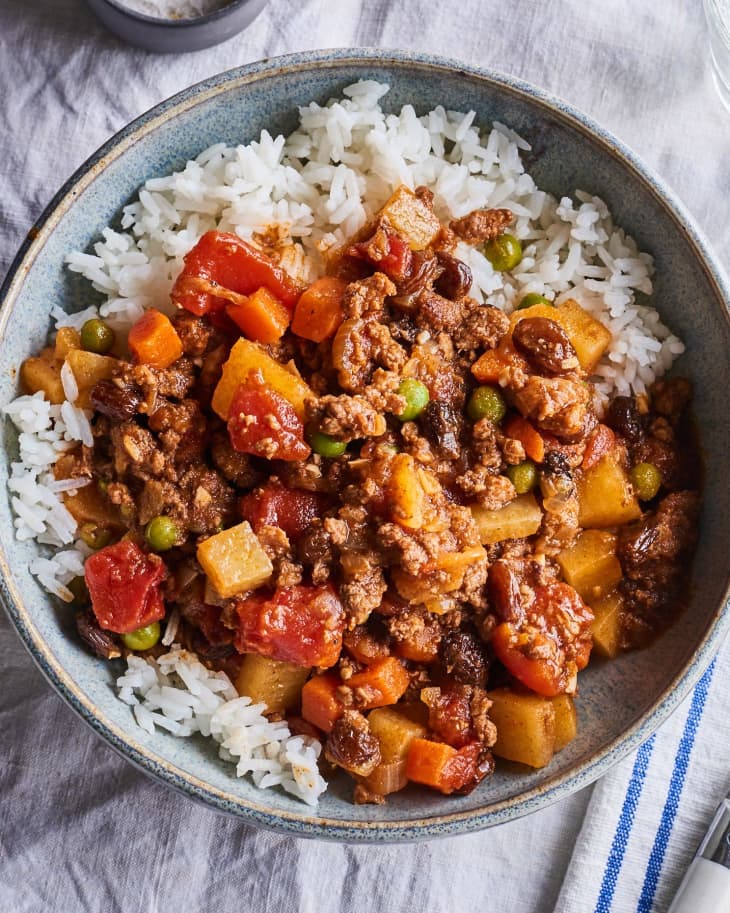 - Add the peas, carrots, and raisins. Add 1 cup frozen peas and carrots and 2/3 cup raisins. Cook uncovered until the peas and carrots are cooked through and the sauce has thickened slightly, about 4 minutes. Serve with cooked white rice.