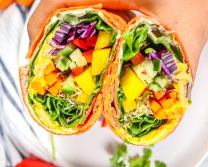 - Assemble the Rainbow Wrap & Enjoy – Lay out a large tortilla on a clean and flat surface.