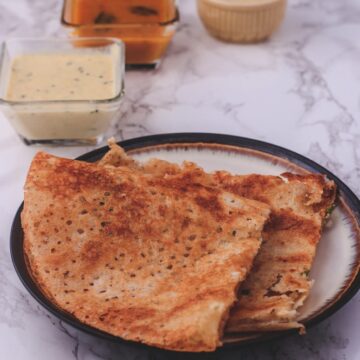 1. When you are ready to make dosa, heat cast-iron skillet or nonstick pan on medium heat. Drizzle some oil in the pan.