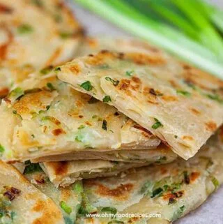 After, open the lid, try to pan fry and flip the scallion pancakes until it’s golden brown. (When you flip the green onion pancakes, try to use some force to slap the pancakes. It helps loosen up the layers.)