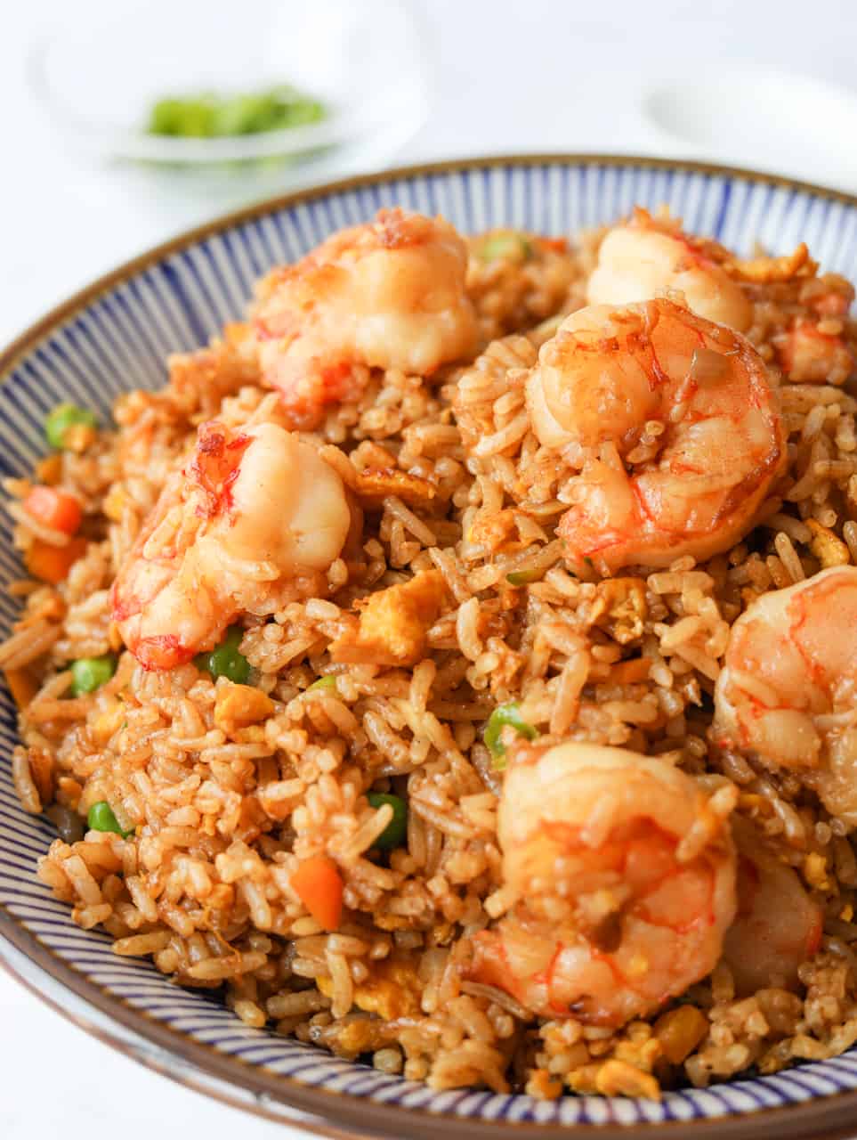 - Add the carrot and fry for a couple of minutes. Then add the garlic and ginger as well as the cooked rice. Fry for 3-5 minutes turning so that all the rice is cooked (add oil if you need it). Add the green onions and omelette into the pan along with the prawns, crab meat and white pepper and cook for a further minute. Taste for seasoning and add salt if necessary and the white pepper. Remove from heat and allow to cool for a minute or two. Then add the tobiko and stir through the rice (do not cook the tobiko).