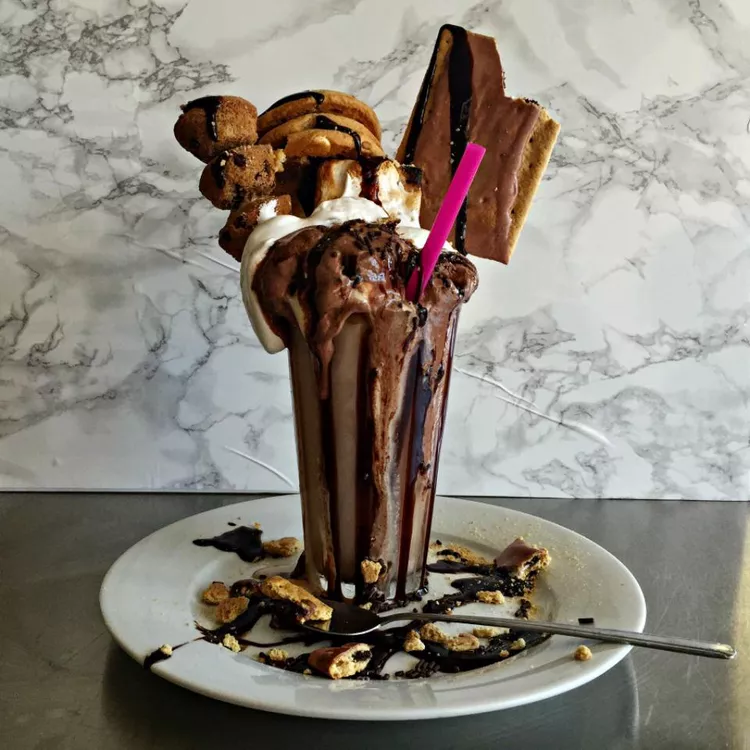 6. Decorate milkshakes with broiled marshmallow crackers, muffins, cookies, toaster pastries, and peanut butter cups. Drizzle chocolate syrup on top and garnish with chocolate sprinkles.