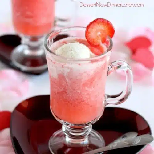 - Pour mixture into glasses, top with a scoop of vanilla bean ice cream and an extra splash of club soda, if desired.