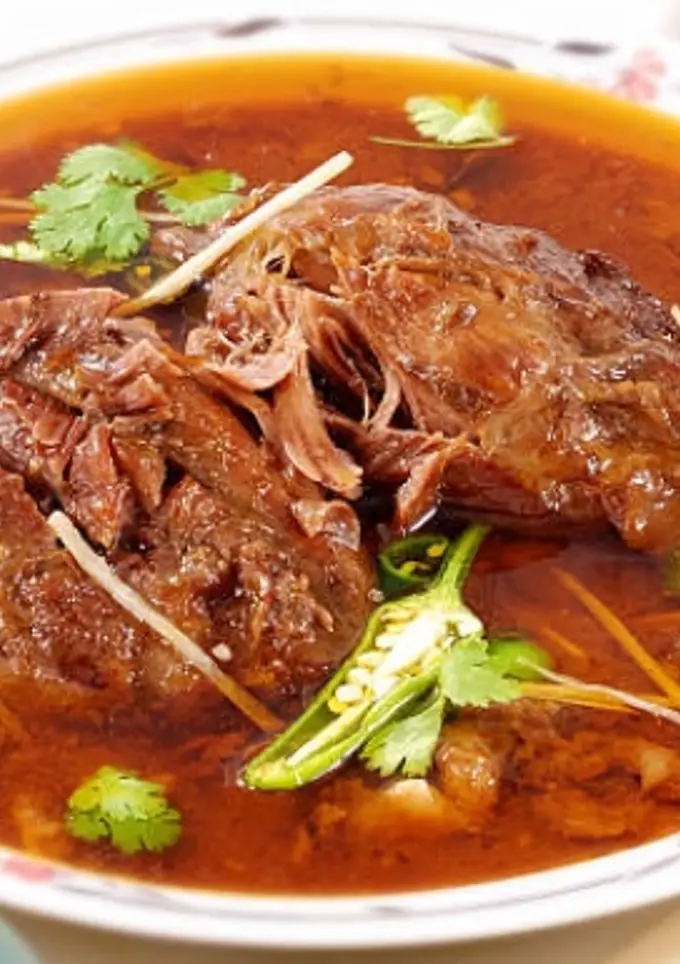 • Add oil in pan 1/2 cup Add beef bong 750 gram Beef bones 250 gm Mix well and cook on Medium flame for 4_5 mins. Add adrak lehsan paste 2TBSMix well and cook for 2_3 mins Add nihari masala mixture Water 2 litre or as required Mix well Bring to boil