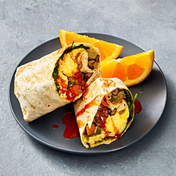 6. To reheat, remove and discard plastic. Wrap burrito in damp paper towel and microwave until heated through, about 3 minutes. Heat large nonstick skillet on medium and cook burrito until golden brown and crisp, 1 to 2 minutes per side.