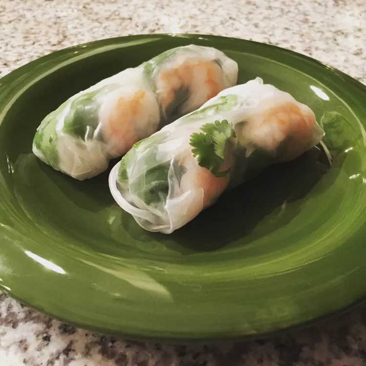 Fill a medium bowl with warm water. Dip each wrapper in water for about 30 seconds until soft and flexible. Lay wrapper on a flat surface, and place 2 basil leaves in center, side by side, about 2 inches from edge of wrapper. Lay 4 to 5 shrimp halves on basil, followed by a small amount of pork, then a small amount of noodles. Sprinkle with cilantro, mint, and top with bean sprouts. Starting at one end, roll the wrapper over once, fold both sides in toward center, and continue rolling as tightly as possible without tearing. The end result should be a roll approximately 1 to 1 1/2 inches thick.