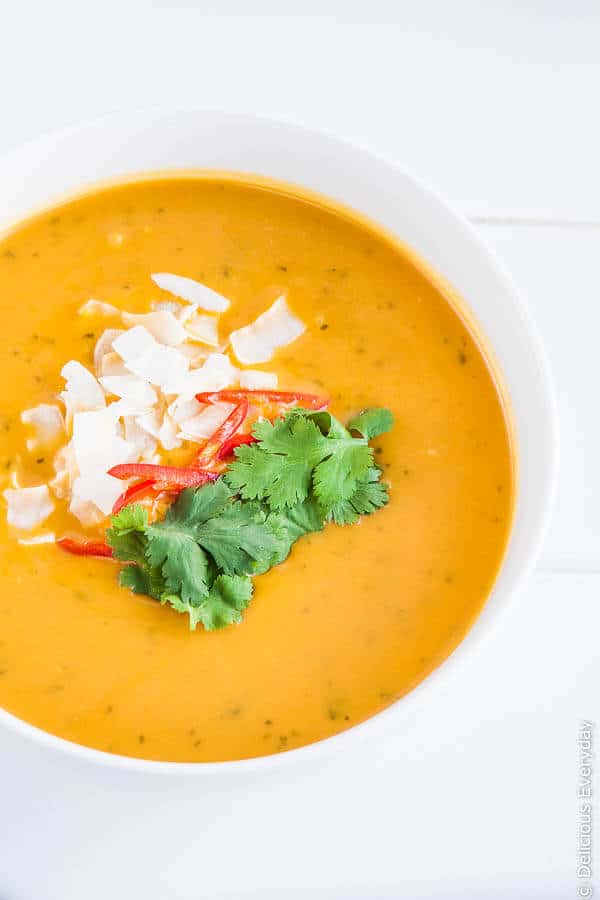 6. Return to a clean saucepan and add the coconut milk. I like to only add half the milk, reserving the rest for garnish. Serve with shaved coconut, the remaining cilantro leaves and chili peppers, if using for garnish.