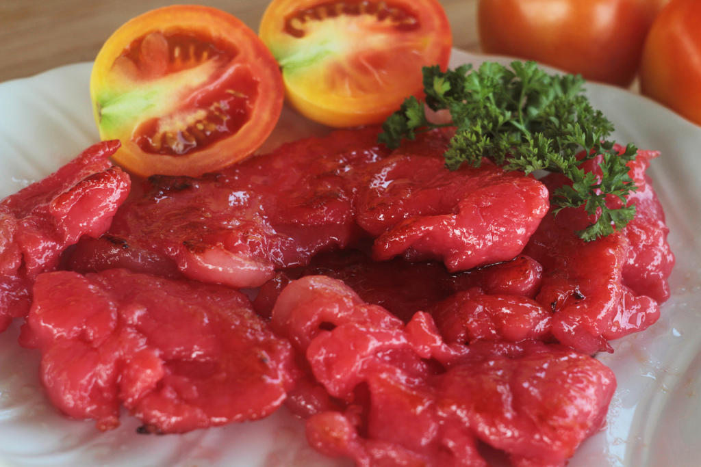 2. In a big bowl, combine all ingredients except for the pork slices. Mix until well blended. Instead of the food coloring, you can use a teaspoon of red beet powder if you’d like.
