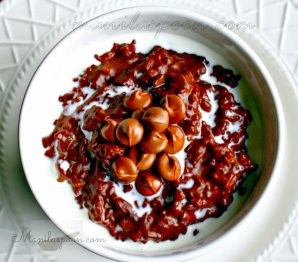 - Serve in individual bowls with additional milk and sugar on the side and perhaps a few sprinkling of extra chocolate chips! Traditionally, we eat it with dried salted fish. But, you don’t have to! For dessert, serve warm and top with vanilla ice cream. Enjoy!